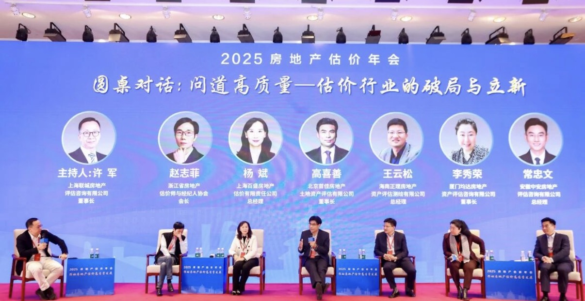 浙江省房地产估价师与经纪人协会会长赵志菲、上海百盛房地产估价有限责任公司总经理杨斌、北京首佳房地产土地资产评估有限公司董事长高喜善、海南正理房地产资产评估测绘有限公司总经理王云松、厦门均达房地产资产评估咨询有限公司董事长李秀荣、安徽中安房地产评估咨询有限公司总经理常忠文等嘉宾,围绕“问道高质量——估价行业的破局与立新”这一主题进行了圆桌对话。嘉宾认为,房地产估价高质量发展,核心是夯实估价质量、提升优质估价服务,同时要注重企业品牌建设和估价技术提升。全行业要凝聚共识、团结协作,精准破解高质量发展中的难题,行业组织聚焦恶性压价竞争等突出问题,推动形成治理合力,营造良好行业发展生态,同时不断建立健全行业标准规范体系、传播行业正向价值,引导行业规范有序发展。估价机构要发挥自身优势,补齐高质量发展短板,通过优化业务结构、强化内部治理、推进数字化转型、吸纳培养专业人才、充分运用技术赋能等举措,增强发展韧性和核心竞争力,实现自身转型升级,进而推动房地产估价实现高质量发展。